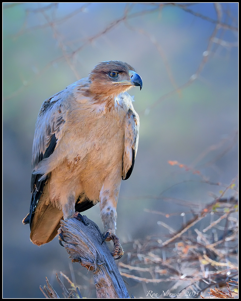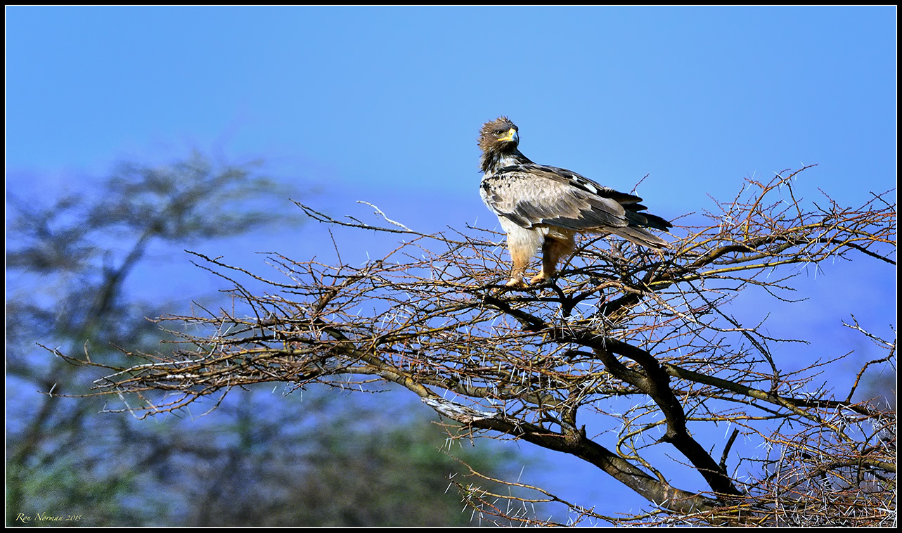 TAWNY EAGLE WAITING FOR SHARE OF LION KILL